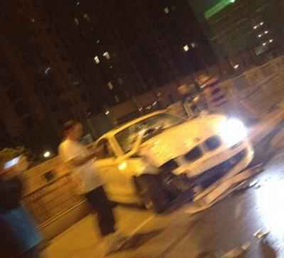 寶馬凌晨撞清涼門(mén)大橋上的南京護(hù)欄網(wǎng),寶馬車(chē)頭嚴(yán)重變形